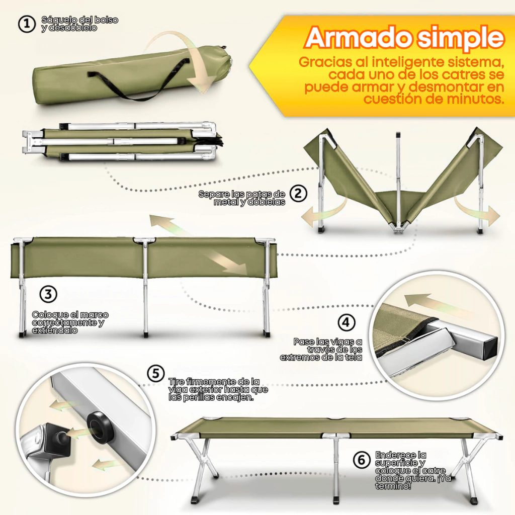 Catre plegable, diseñado para brindar una solución cómoda y portátil para descansar en situaciones al aire libre, como camping, excursiones o eventos al aire libre.